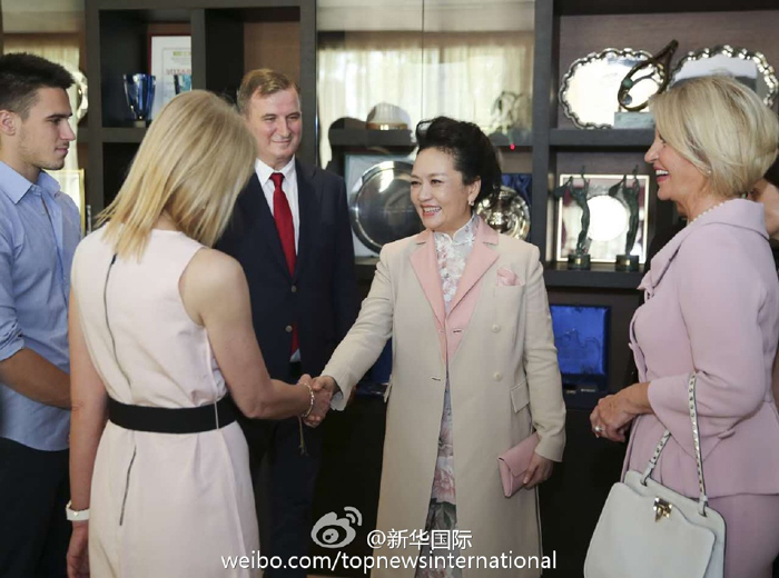 ??? 新華網(wǎng)北京6月18日電 18日中午,彭麗媛在塞爾維亞總統(tǒng)夫人德拉吉察陪同下,參觀了德約科維奇網(wǎng)球培訓(xùn)中心,并同塞爾維亞著名網(wǎng)球運(yùn)動(dòng)員德約科維奇的母親、叔父和弟弟親切會面。彭麗媛對德約科維奇家人說:“小德在中國擁有很多粉絲?!迸睇愭路Q贊德約科維奇不僅球技精湛而且充滿愛國情懷。彭麗媛還向網(wǎng)球培訓(xùn)中心贈送德約科維奇自傳《一發(fā)制勝》的中文版。?(新華社新華國際微博報(bào)道)
