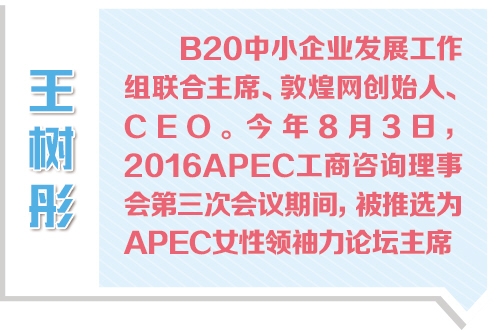 B20召開在即,工商界將如何為實現(xiàn)全球經(jīng)濟增長貢獻智慧?B20中小企業(yè)發(fā)展工作組聯(lián)合主席、敦煌網(wǎng)創(chuàng)始人、CEO王樹彤表示,在今年的《B20政策建議報告》中,B20中小企業(yè)發(fā)展工作組共提出了4條政策建議,占整個報告篇幅的五分之一。