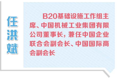 B20基礎(chǔ)設(shè)施工作組主席、中國機械工業(yè)集團有限公司董事長任洪斌接受《經(jīng)濟日報》記者采訪時表示,基礎(chǔ)設(shè)施工作組向二十國集團(G20)峰會提交了5條建議,以積極推動基礎(chǔ)設(shè)施建設(shè),縮小基建投資缺口。