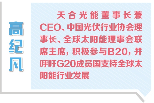 出席B20的全球太陽能理事會聯(lián)席主席、天合光能董事長兼CEO高紀(jì)凡在接受《經(jīng)濟日報》記者采訪時表示,太陽能發(fā)電已成為全球最便宜的電力資源之一,建議二十國集團(G20)支持全球太陽能理事會“至2030年在太陽能行業(yè)創(chuàng)造1000萬個就業(yè)機會”的目標(biāo),建立太陽能領(lǐng)域的國家級、公私合作的數(shù)據(jù)收集和傳播網(wǎng)絡(luò)。
