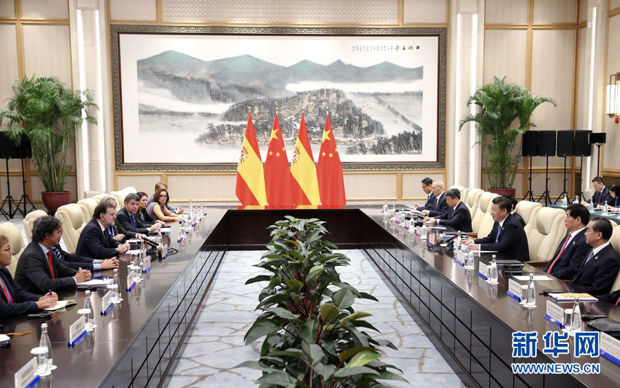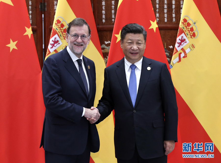 9月5日,國(guó)家主席習(xí)近平在杭州會(huì)見西班牙首相拉霍伊。新華社記者龐興雷攝