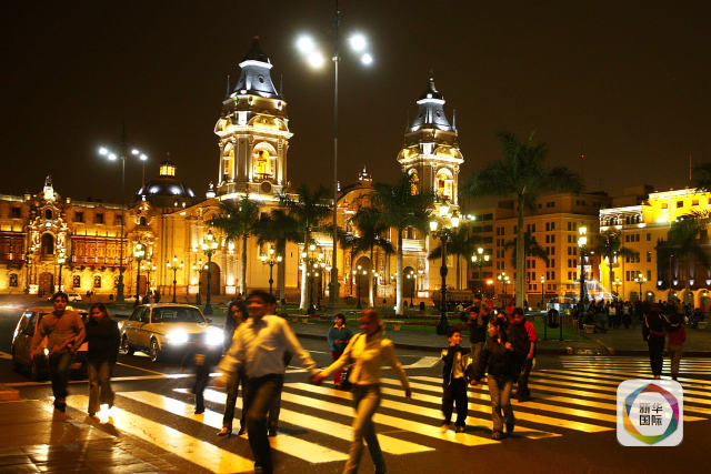 這是2008年11月18日拍攝的秘魯首都利馬馬約爾廣場夜色。新華社記者龔兵攝