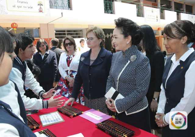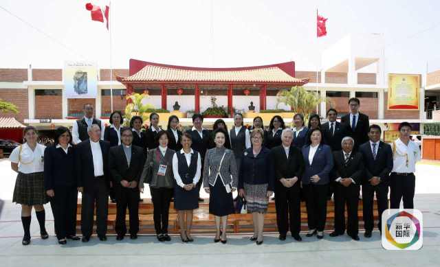 ??? 彭麗媛抵達時,秘魯總統(tǒng)夫人蘭格和學校校長在下車處迎接,校長為彭麗媛獻上鮮花。若望二十三世秘中學校創(chuàng)辦于1962年,是從幼兒園到中學教育的全日制學校,也是秘魯乃至南美洲最具影響的華文學校之一。