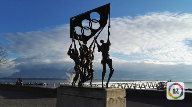 洛桑奧林匹克博物館公園對(duì)面湖邊便道上的雕塑。新華社記者高鵬攝