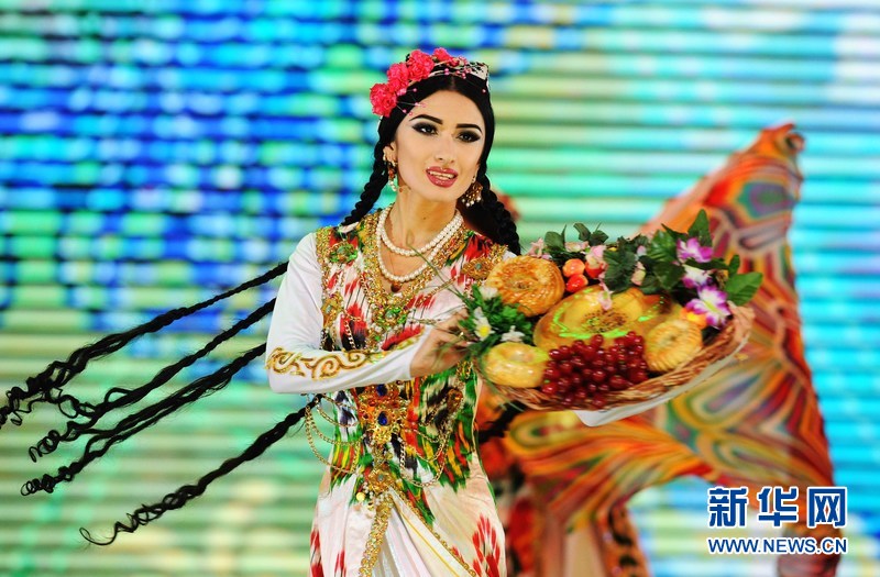 1月18日晚,烏茲別克斯坦首都塔什干人民友誼宮,烏茲別克斯坦舞蹈演員在表演中烏傳統(tǒng)舞蹈。