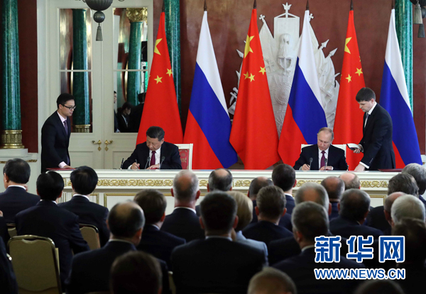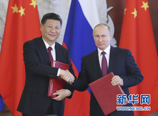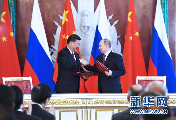 7月4日,國家主席習近平在莫斯科克里姆林宮同俄羅斯總統(tǒng)普京舉行會談。會談后,兩國元首簽署了《中華人民共和國和俄羅斯聯(lián)邦關于進一步深化全面戰(zhàn)略協(xié)作伙伴關系的聯(lián)合聲明》《中華人民共和國和俄羅斯聯(lián)邦關于當前世界形勢和重大國際問題的聯(lián)合聲明》,批準了《〈中華人民共和國和俄羅斯聯(lián)邦睦鄰友好合作條約〉實施綱要(2017年至2020年)》并見證了《中華人民共和國外交部和俄羅斯聯(lián)邦外交部關于朝鮮半島問題的聯(lián)合聲明》以及經(jīng)貿(mào)、農(nóng)業(yè)、能源、基礎設施建設、金融、文化、創(chuàng)新、媒體、信息網(wǎng)絡、檢驗檢疫等領域多項雙邊合作文件的交換。新華社記者 饒愛民 攝