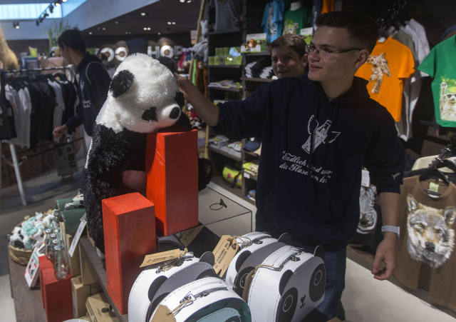 6月24日,來自四川成都大熊貓繁育研究基地的“夢夢”和“嬌慶”抵達柏林。在兩只可愛的大熊貓順利通過隔離檢疫期后,位于柏林動物園內(nèi)的大熊貓館即將正式對公眾開放。柏林動物園準備了數(shù)十種熊貓周邊商品,包括玩偶、畫冊、飾品、杯子和包袋等。