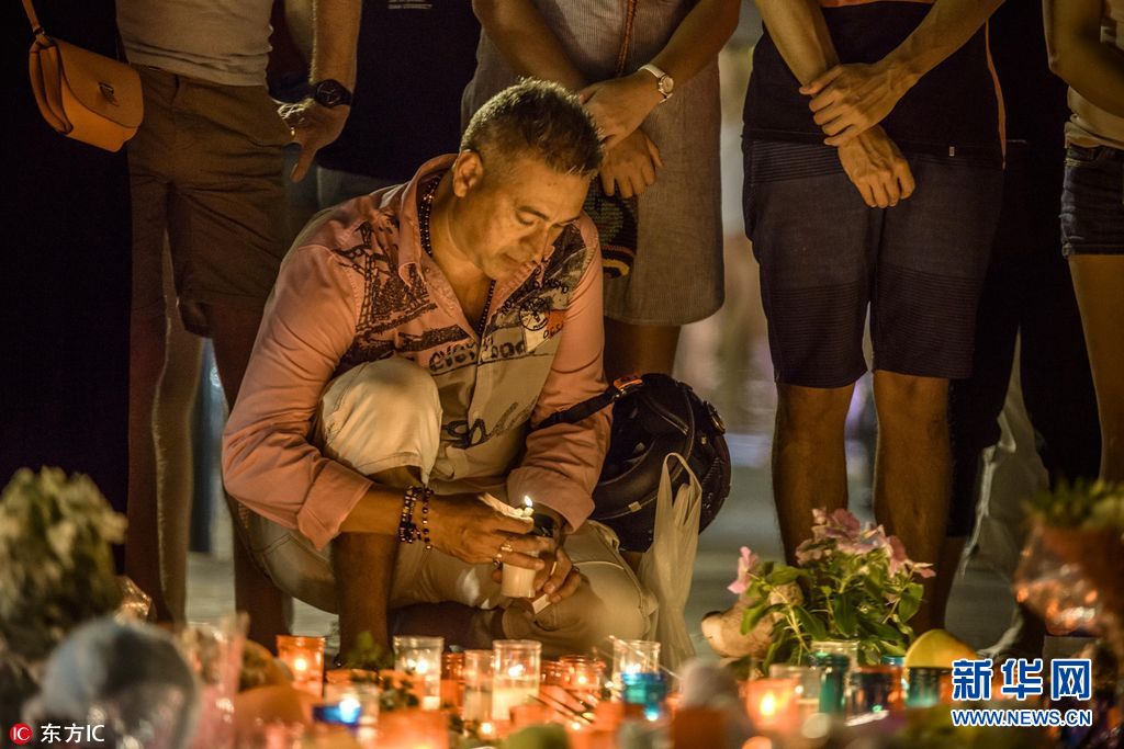 當(dāng)?shù)貢r間2017年8月18日,西班牙巴塞羅那,當(dāng)?shù)孛癖婞c(diǎn)燭獻(xiàn)花悼念恐襲事件遇難者。17日,一輛白色貨車在巴塞羅那市中心蘭布拉大道加泰羅尼亞廣場附近沖撞人群,據(jù)媒體報(bào)道,死亡人數(shù)已經(jīng)升至14人。(圖片來源: 東方IC)