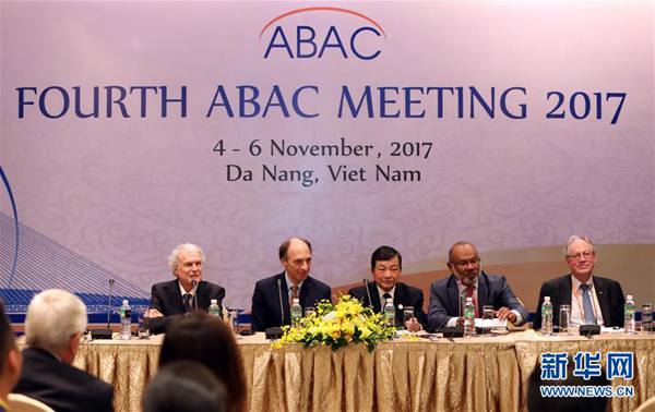 11月6日,在越南峴港,APEC工商咨詢理事會(huì)成員代表出席記者會(huì)。2017亞太經(jīng)合組織(APEC)工商咨詢理事會(huì)成員6日表示,中國(guó)經(jīng)濟(jì)發(fā)展對(duì)APEC區(qū)域經(jīng)濟(jì)發(fā)展至關(guān)重要,期待中國(guó)智慧在推動(dòng)區(qū)域經(jīng)濟(jì)一體化方面發(fā)揮更大作用。新華社記者李鵬攝