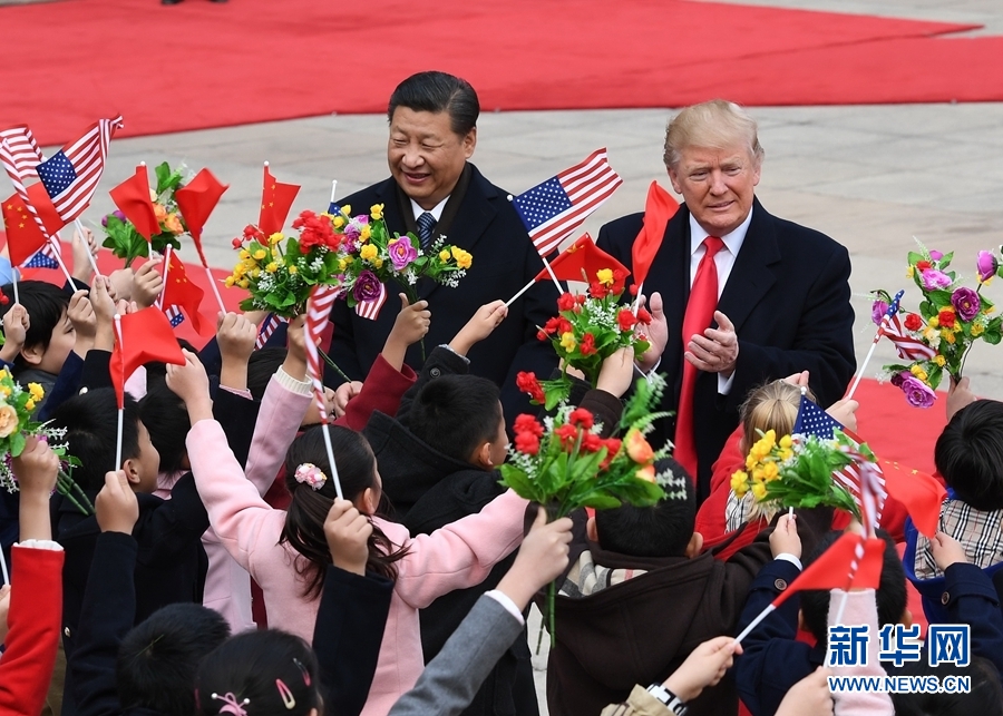 11月9日,國(guó)家主席習(xí)近平在北京人民大會(huì)堂東門外廣場(chǎng)舉行歡迎儀式,歡迎美利堅(jiān)合眾國(guó)總統(tǒng)唐納德·特朗普對(duì)中國(guó)進(jìn)行國(guó)事訪問(wèn)。 新華社記者饒愛(ài)民 攝