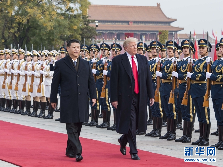 11月9日,國家主席習近平在北京人民大會堂東門外廣場舉行歡迎儀式,歡迎美利堅合眾國總統(tǒng)唐納德·特朗普對中國進行國事訪問。 新華社記者李濤 攝