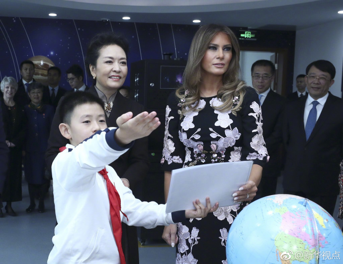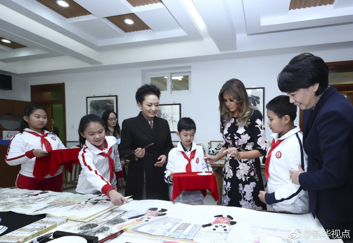 彭麗媛和梅拉尼婭在古建筑教室。(記者白潔、鞠鵬)(據(jù)新華社“新華視點”微博報道)