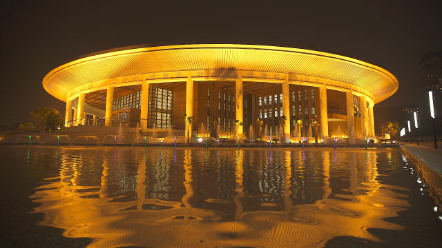 河內(nèi)西南部開發(fā)區(qū)黎光道188號,中方援建的越中友誼宮坐落于此。這座建筑呈現(xiàn)蓮花造型,外部四角布有水池,營造出一種出水芙蓉的意境。白色的立柱環(huán)抱著柚木色的主墻,典雅精致。外圓而內(nèi)方的設(shè)計(jì),象征和諧、團(tuán)結(jié)與圓滿,傳遞中越友誼長存、世代友好的深意。