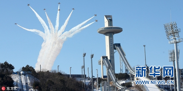 平昌冬奧會倒計時50天 韓黑鷹飛行隊在空中“畫”出奧運(yùn)五環(huán)(圖)