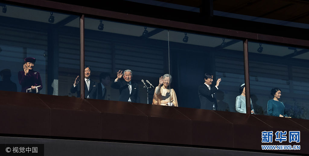 當(dāng)?shù)貢r(shí)間2017年12月23日,日本東京,日本明仁天皇慶祝84歲生日,在皇宮的陽臺(tái)上向祝福者揮手致意。(圖片來源:視覺中國)
