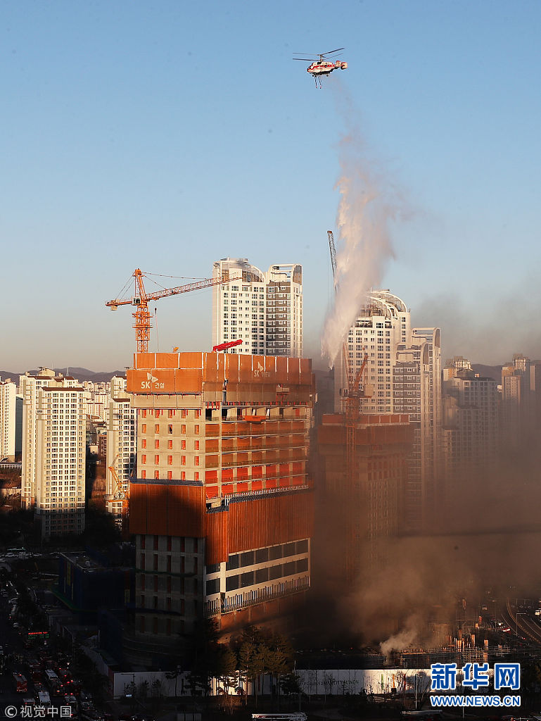 韓國(guó)水原市建筑工地發(fā)生火災(zāi) 現(xiàn)場(chǎng)濃煙滾滾