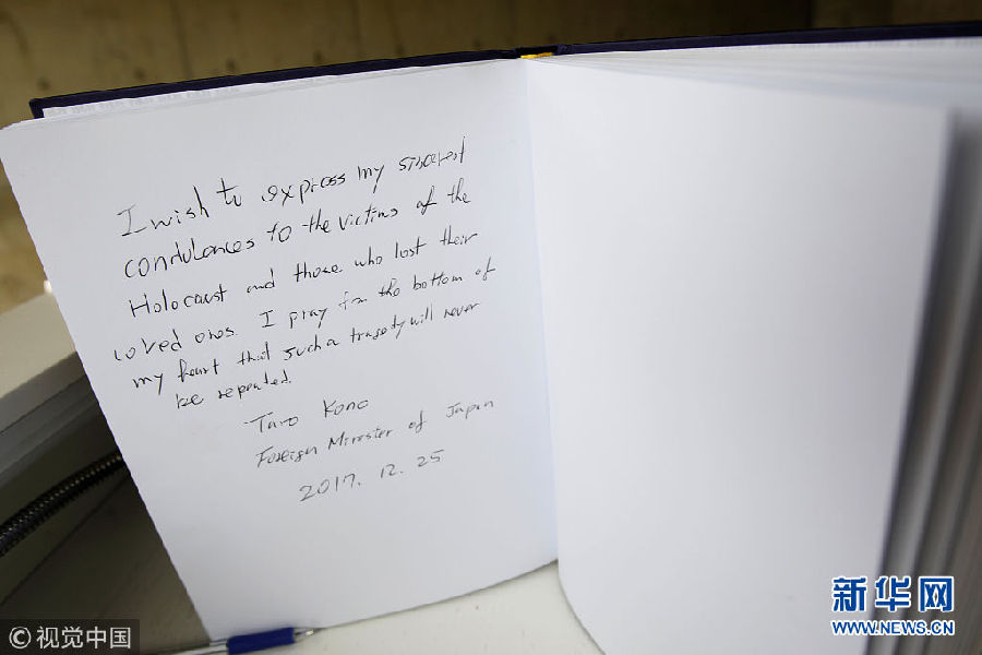 日本外相訪問(wèn)耶路撒冷 在大屠殺紀(jì)念館鞠躬悼念死難者