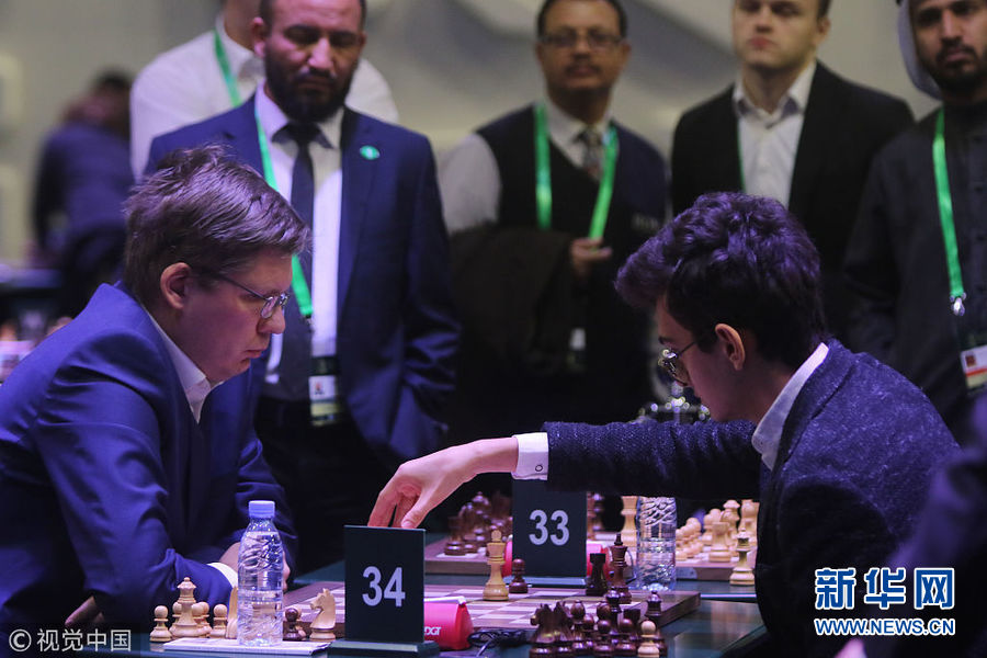 12月26日,沙特阿拉伯利雅得,世界快棋錦標(biāo)賽在當(dāng)?shù)嘏e行。國際象棋聯(lián)合會24日說,7名以色列選手因簽證申請遭沙特阿拉伯拒絕無緣參賽。(圖片來源:視覺中國)