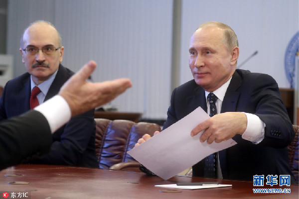 當(dāng)?shù)貢r間27日,俄羅斯莫斯科,俄羅斯總統(tǒng)普京親自向俄中央選舉委員會遞交參加2018年總統(tǒng)大選的文件。俄羅斯將于2018年3月18日舉行總統(tǒng)大選。
