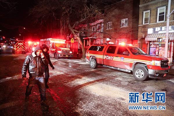 12月29日凌晨,人們從美國紐約布朗克斯區(qū)發(fā)生火災的樓房附近經過。新華社記者 王迎 攝