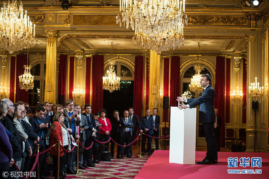 法國總統(tǒng)馬克龍向記者團送上新年祝福