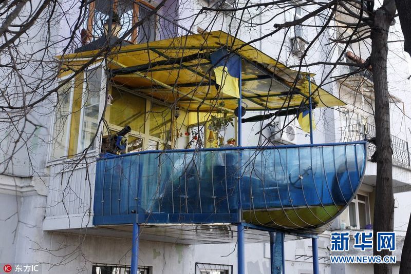 【帥!軍艦陽臺(tái)】2017年3月30日,烏克蘭基輔,72歲的老人Olexander Shkolnik曾是一名海軍少校。退役后,老人將自家陽臺(tái)打造成了軍艦?zāi)?,以紀(jì)念自己的海軍生涯。