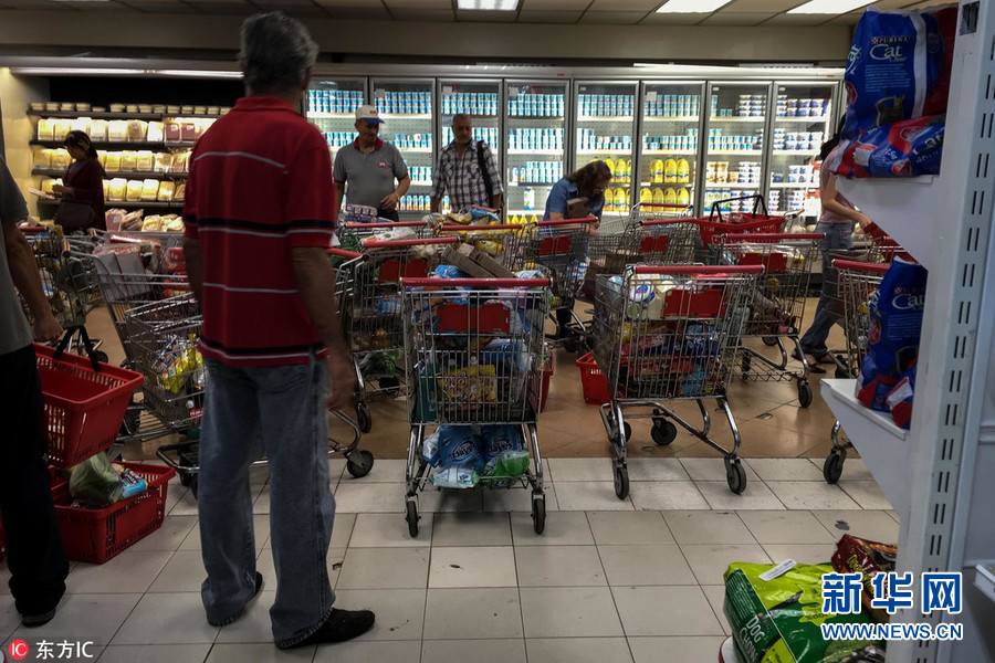 1月6日,委內瑞拉加拉加斯,馬杜羅政府對物價進行調控,下令全國26個連鎖超市對部分商品進行降價,消息一經發(fā)出后,民眾紛紛涌入超市,排隊搶購商品。(圖片來源:東方IC)