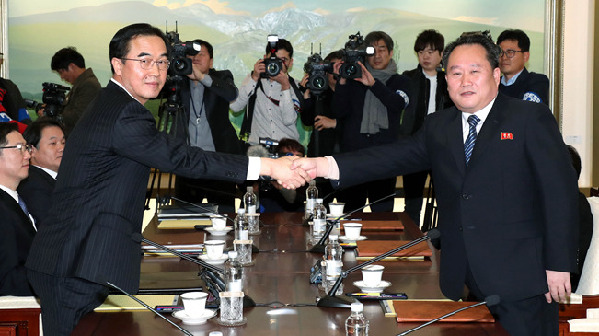當(dāng)?shù)貢r間9日10時(北京時間9時),韓國和朝鮮代表在板門店韓方一側(cè)“和平之家”開始舉行高級別會談,討論朝方派代表團(tuán)參加平昌冬奧會、南北關(guān)系改善等議題。這是2015年12月韓朝副部長級會談之后雙方首次舉行政府間會談。
