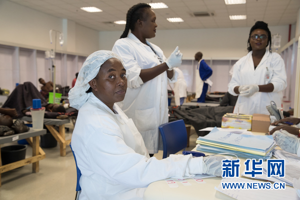 1月9日,一名醫(yī)護(hù)人員在位于國家英雄體育場的霍亂治療中心男性病房內(nèi)工作。新華網(wǎng)發(fā) (彭立軍攝)