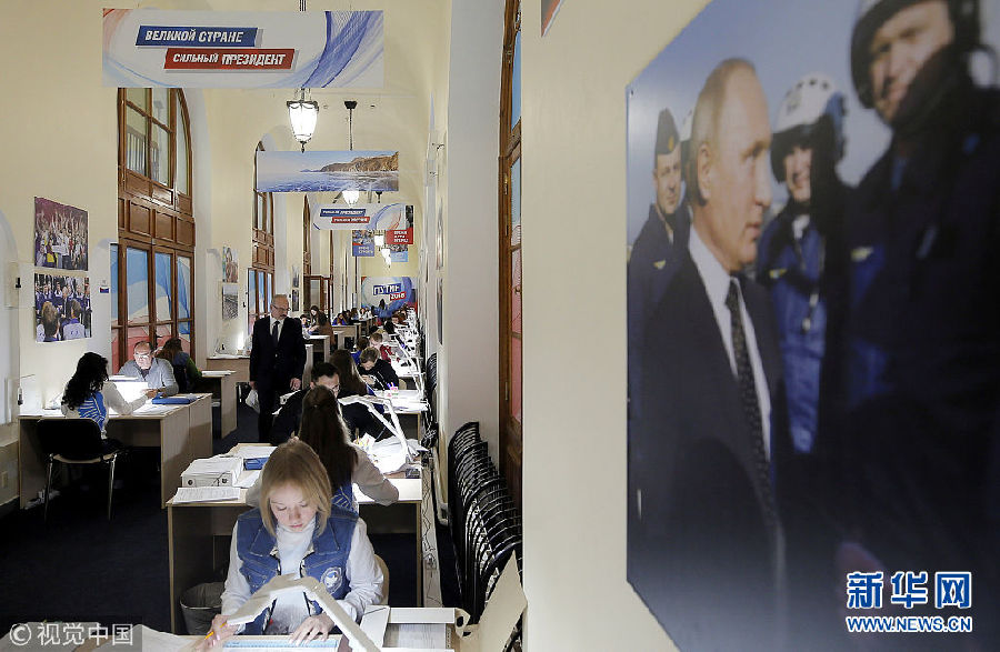 當(dāng)?shù)貢r(shí)間2018年1月17日,俄羅斯莫斯科,俄羅斯總統(tǒng)普京大選競選總部的志愿者核查收集到的支持普京參選的簽名。(圖片來源:視覺中國)