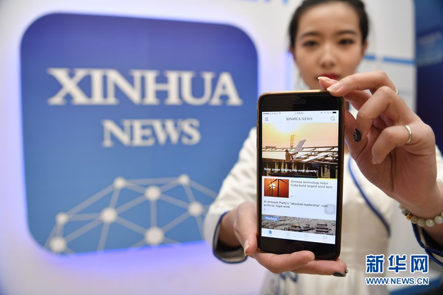 1月23日上午10:00,新華社英文客戶端上線發(fā)布會(huì)在總社大廈多功能廳舉行。圖為工作人員展示新華社英文客戶端。新華社記者 金良快攝