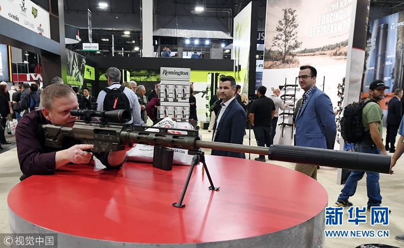 當(dāng)?shù)貢r(shí)間2018年1月23日,美國拉斯維加斯,美國全國射擊運(yùn)動(dòng)基金會(huì)(NSSF)舉辦槍支展銷會(huì)。(圖片來源:視覺中國)