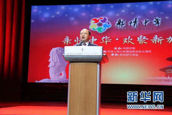 中國(guó)駐新加坡使館臨時(shí)代辦房新文在致辭中表示,“親情中華”藝術(shù)團(tuán)千里迢迢來(lái)到新加坡,為我們帶來(lái)精彩的藝術(shù)盛宴和美好祝福,增進(jìn)了中新兩國(guó)人民的情誼,增強(qiáng)了中新兩國(guó)文化交流的活力。