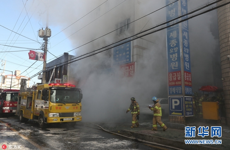 韓國慶尚南道密陽市一家醫(yī)院當(dāng)?shù)貢r間26日上午發(fā)生火災(zāi)。新華網(wǎng)發(fā)