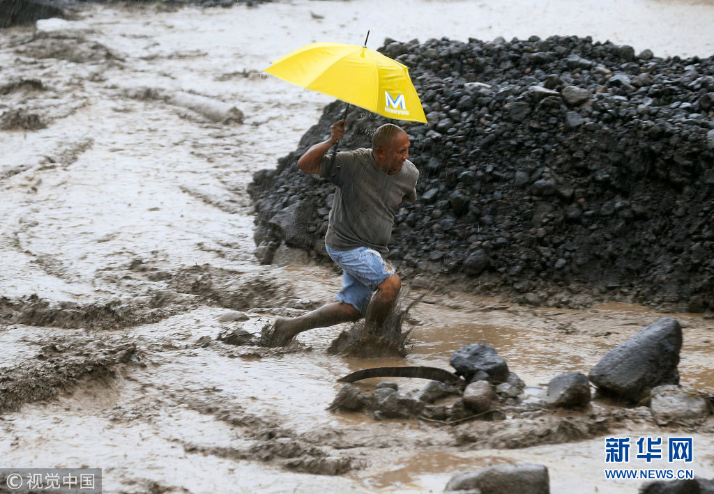 當(dāng)?shù)貢r(shí)間2018年1月27日,菲律賓阿爾拜省,民眾穿過(guò)混合著火山灰的泥漿河。(圖片來(lái)源:視覺(jué)中國(guó))