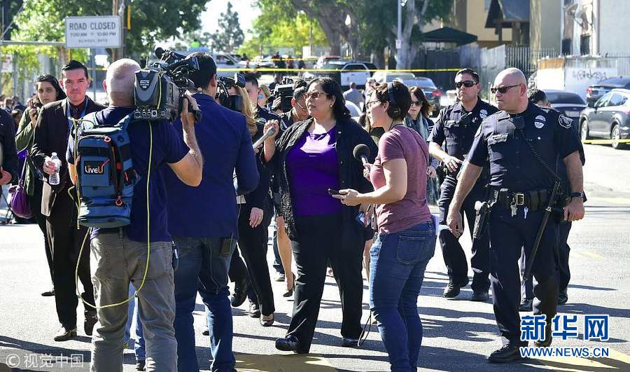 2月1日,美國(guó)洛杉磯,洛杉磯薩斯卡斯特羅(Sal Castro)中學(xué)發(fā)生槍擊案,已致2名學(xué)生送醫(yī),且傷情不明。警方表示,現(xiàn)場(chǎng)情況已經(jīng)得到控制,開槍的女學(xué)生已被羈押。但警方并未透露該學(xué)生的年齡和姓名。(圖片來(lái)源:視覺(jué)中國(guó))