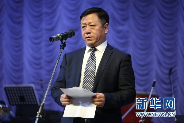 中國(guó)駐哈薩克斯坦大使張漢暉為音樂會(huì)致辭。新華網(wǎng)發(fā) (阿比洛夫攝)