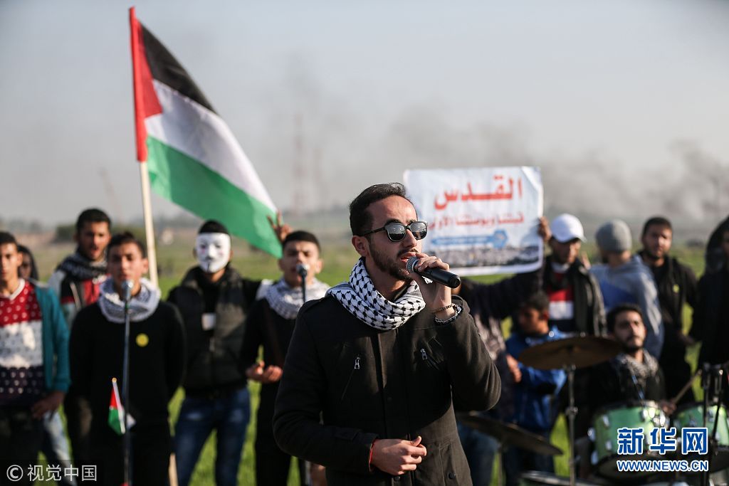 巴勒斯坦示威者與以士兵發(fā)生沖突 巴樂隊(duì)沖突中淡定開唱