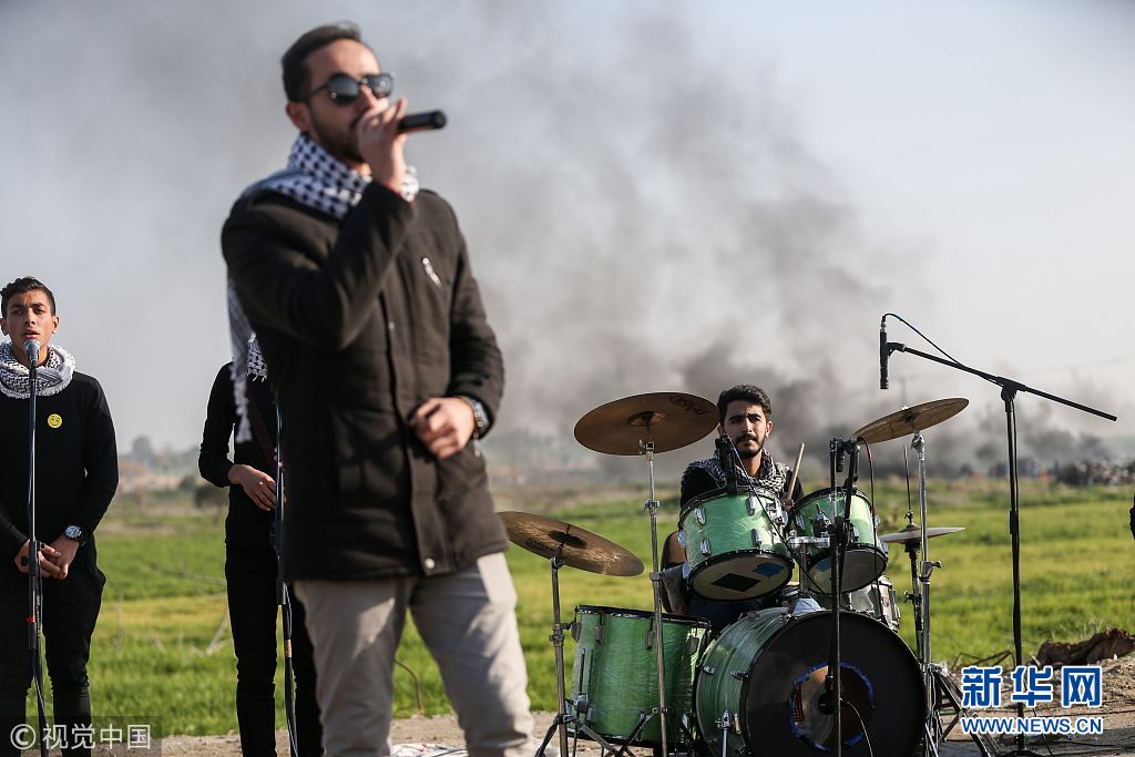 巴勒斯坦示威者與以士兵發(fā)生沖突 巴樂隊(duì)沖突中淡定開唱