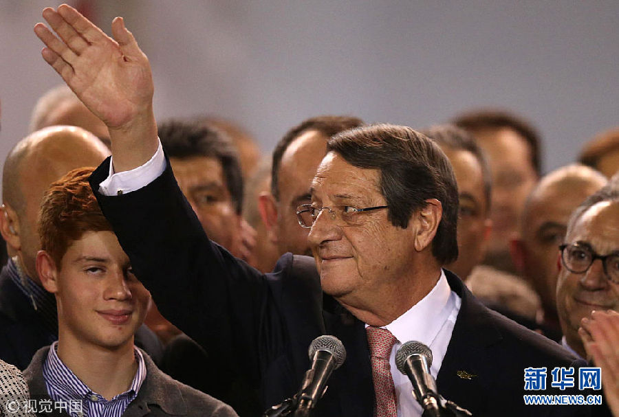當(dāng)?shù)貢r間2月4日,塞浦路斯尼科西亞,塞浦路斯現(xiàn)任總統(tǒng)尼科斯·阿納斯塔夏季斯出席宣告儀式。阿納斯塔夏季斯在總統(tǒng)選舉第二輪投票中獲得56%的選票,成功連任。塞浦路斯實行總統(tǒng)制,總統(tǒng)任期5年。(圖片來源:視覺中國)