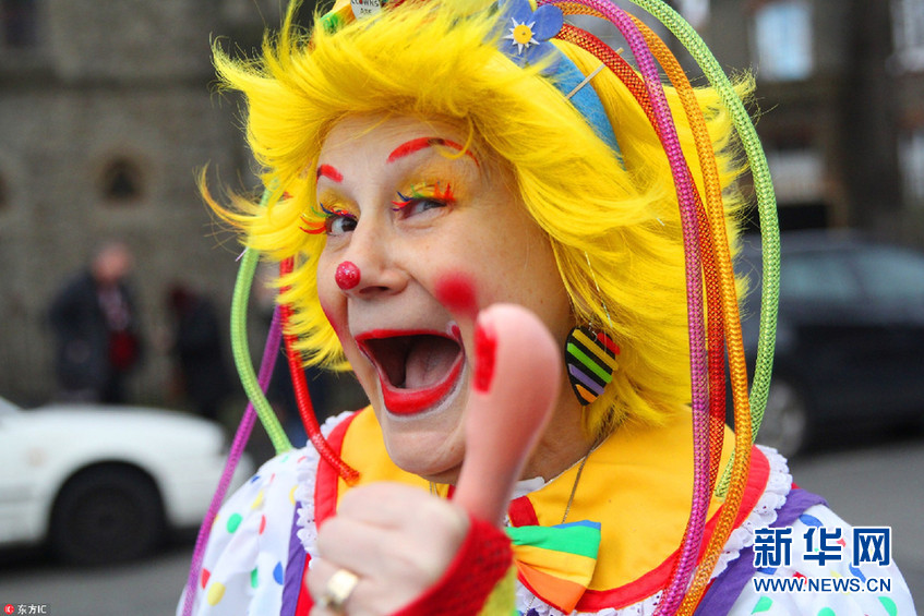 當(dāng)?shù)貢r(shí)間2月4日,英國倫敦,人們扮成小丑的模樣聚集在圣三一教堂,為英國“小丑之父”約瑟夫-格里馬爾迪(1778-1837)舉辦紀(jì)念會(huì)。(圖片來源:東方IC)