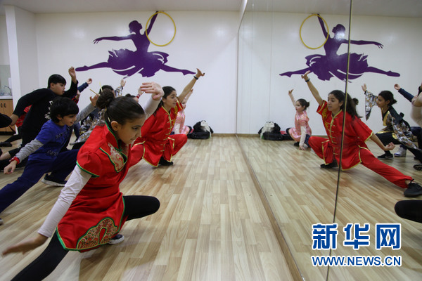 學(xué)生們跟著一名“洋老師”學(xué)中國功夫。新華網(wǎng)發(fā)(李良勇攝)