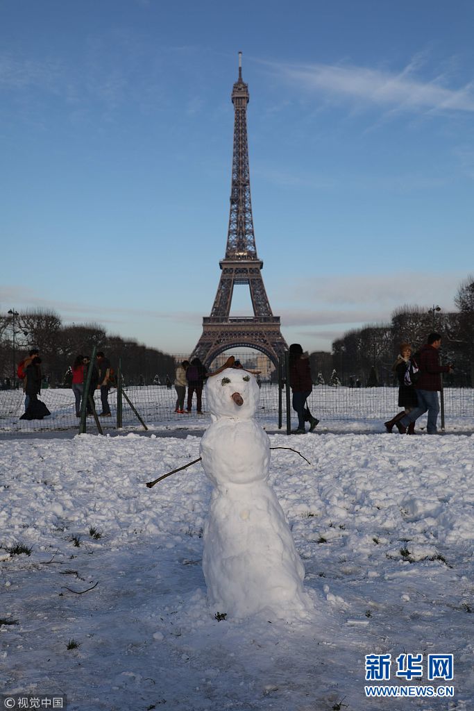法國巴黎降下罕見大雪 埃菲爾鐵塔臨時(shí)關(guān)閉