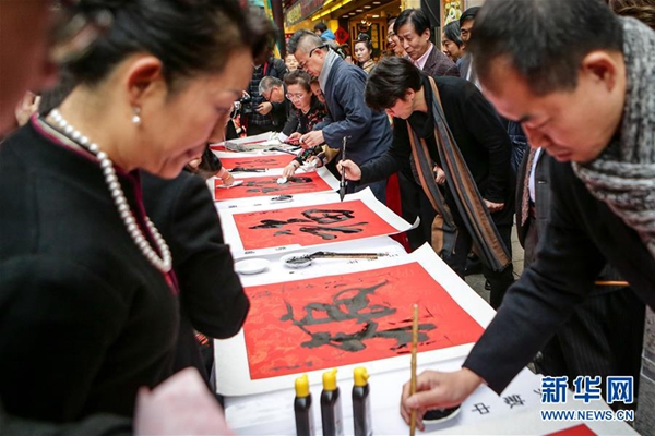 活動(dòng)現(xiàn)場(chǎng),從日本各地趕來(lái)的十多位華人書(shū)法藝術(shù)家,伴著優(yōu)雅的古箏彈奏,筆精墨妙,寫(xiě)出一幅幅行云流水的對(duì)聯(lián)、一張張蒼勁有力的“?!弊??;顒?dòng)期間,200余件春聯(lián)、新春“?!弊謴乃麄兪种姓Q生,傳遞給在日華僑華人和對(duì)中國(guó)文化感興趣的日本人,為大家送去新春祝福。