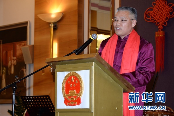 2月12日,中國(guó)駐克羅地亞大使胡兆明在薩格勒布出席中國(guó)春節(jié)慶祝晚會(huì)時(shí)致辭。新華網(wǎng)發(fā)(高磊攝)
