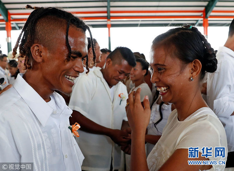 2月13日,菲律賓蘇比克,情人節(jié)前夕,當(dāng)?shù)嘏e辦集體婚禮。(圖片來(lái)源:視覺(jué)中國(guó))