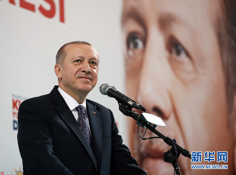 當(dāng)?shù)貢r(shí)間2018年2月17日,土耳其埃斯基謝希爾,土耳其總統(tǒng)埃爾多安出席正義與發(fā)展黨集會(huì),手持橄欖枝發(fā)表講話(huà)。(圖片來(lái)源:東方IC)