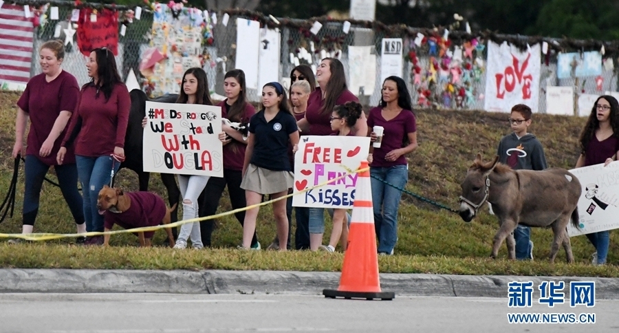 當(dāng)?shù)貢r(shí)間2月28日,美國佛羅里達(dá)州帕克蘭,發(fā)生槍擊案的道格拉斯中學(xué)復(fù)課,學(xué)生和教職工重返校園,大批警察出動(dòng)維護(hù)治安。2月14日,一名19歲的槍手在學(xué)校里開槍,造成17人死亡。(圖片來源:視覺中國)