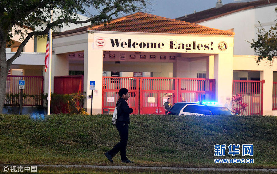 當(dāng)?shù)貢r間2月28日,美國佛羅里達(dá)州帕克蘭,發(fā)生槍擊案的道格拉斯中學(xué)復(fù)課,學(xué)生和教職工重返校園,大批警察出動維護(hù)治安。2月14日,一名19歲的槍手在學(xué)校里開槍,造成17人死亡。(圖片來源:視覺中國)