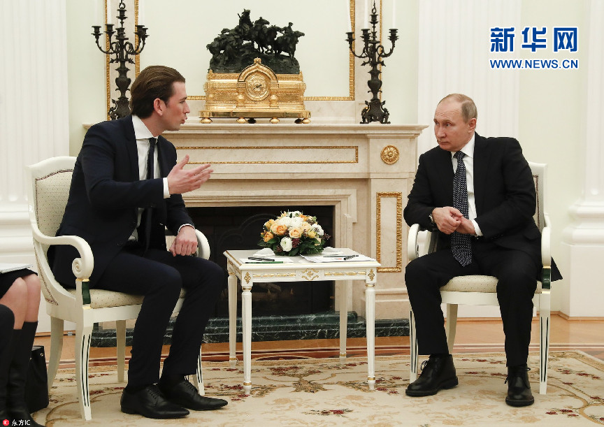 當?shù)貢r間2月28日,俄羅斯莫斯科,奧地利總理庫爾茨訪問俄羅斯,與俄總統(tǒng)普京在克里姆林宮舉行會晤。(圖片來源:東方IC)
